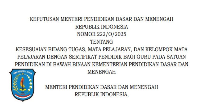RINGKASAN KEPMEN PENDIDIKAN DASAR DAN MENENGAH 222/O/2025 – LINIARITAS GURU