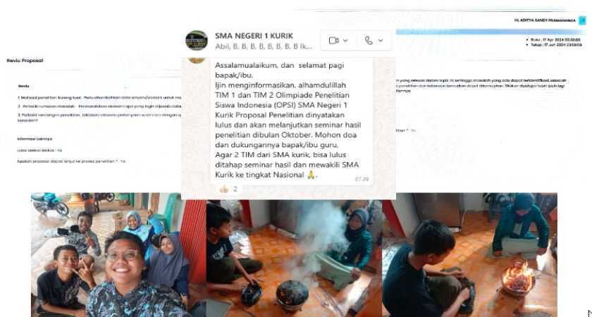 Kami ucapan selamat atas pencapaian luar biasa ini. Keberhasilan mereka adalah bukti dari kerja keras, ketekunan, dan dedikasi yang luar biasa. Semoga senantiasa diberikan kekuatan dan keberkahan dalam menghadapi tahapan selanjutnya, yaitu seminar hasil penelitian. Kita yakin, dengan semangat dan kesungguhan yang sama, kita akan mampu memberikan yang terbaik dan mewakili SMAN 1 Kurik dengan gemilang di tingkat nasional.